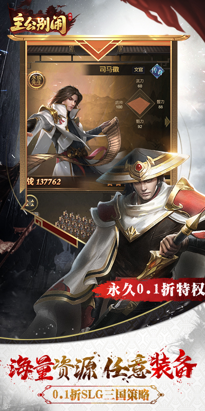 《主公别闹》是一款三国背景的游戏,其即时战斗系统,抛弃了以卡牌进入战场的回合制形式,把所有卡牌的英雄以模型形象制作,动态的进入战场,战斗以系统自动为主,玩家可以以实时动态的形式观赏整个战斗过程。
