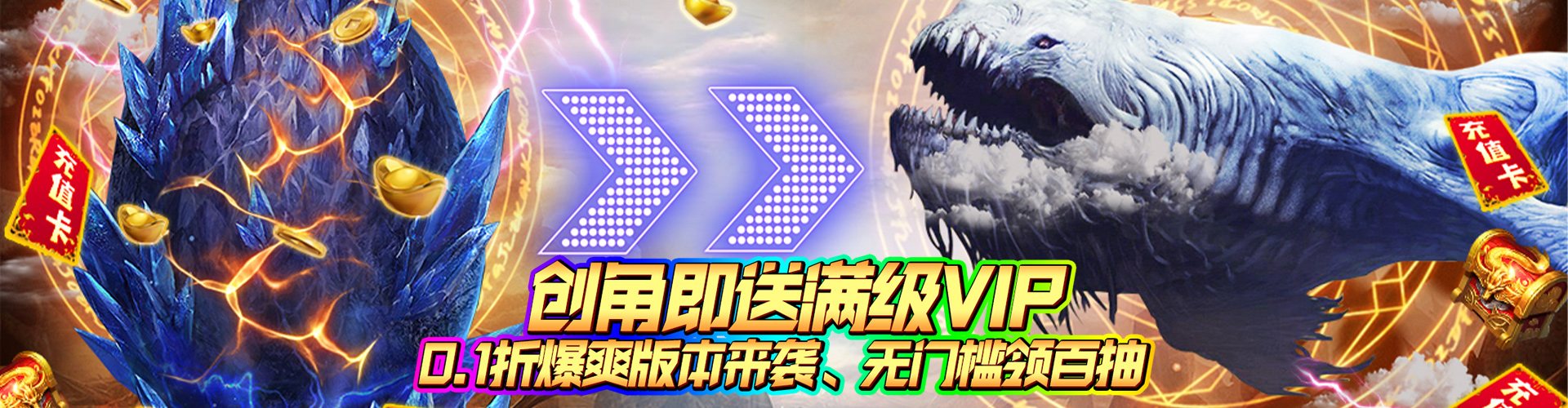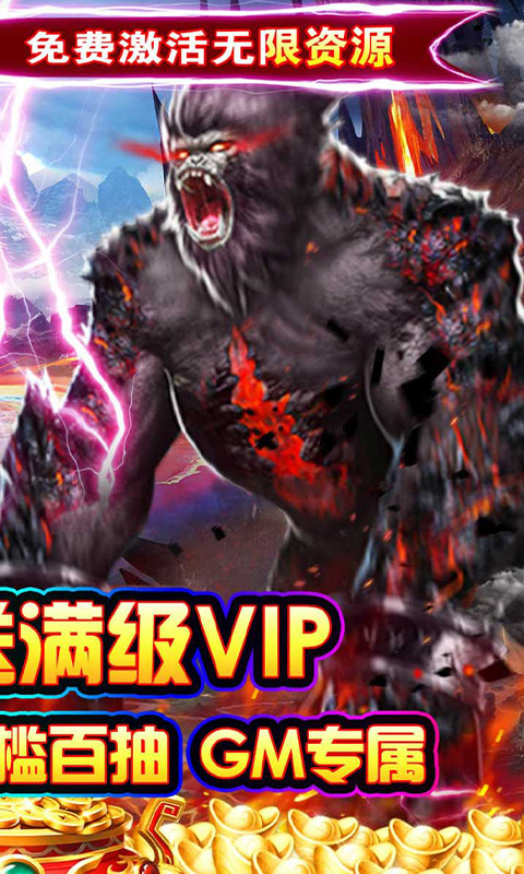 1、创角即送满级VIP、绝版称号、无门槛百抽、GM专属礼包