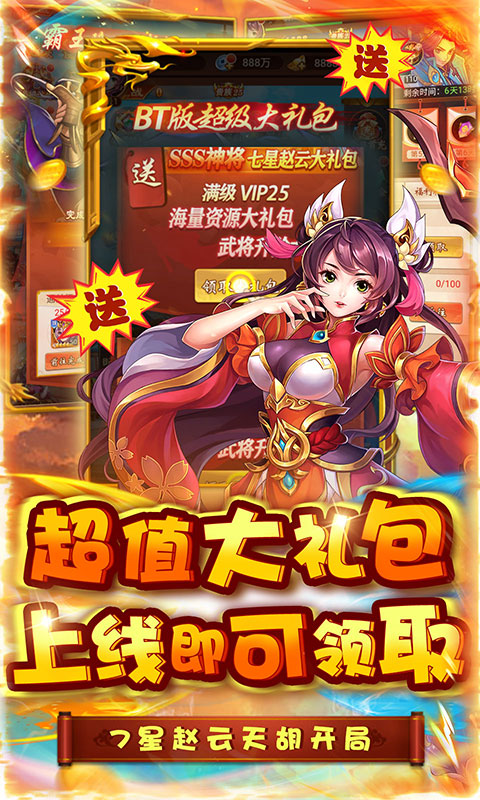 2、上线白给VIP25、88888元宝、888万银两,还有升级礼包