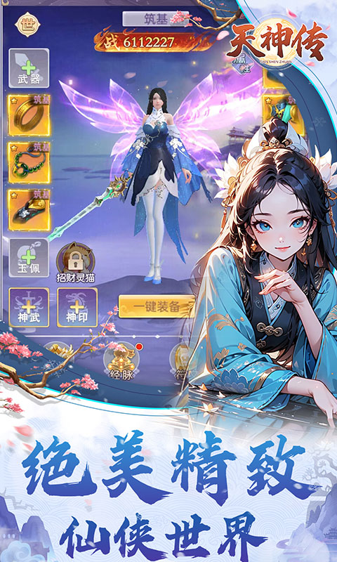 《天神传》致力于打造一个超高清绝美精致仙侠世界,高精度人物、道具建模,华丽丽灵翼、神兵、光影特效带来独一无二的视觉体验,带你领略向往的仙侠世界;仙阶、转生高强度还原修仙元素,空谷幽兰、锦绣红尘、梦游星云等特色古风时装糅合暗黑机甲外显连接两个时空的碰撞,体验全网最特别的修仙之旅