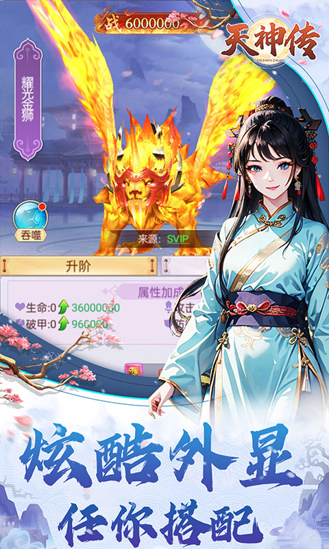 《天神传》致力于打造一个超高清绝美精致仙侠世界,高精度人物、道具建模,华丽丽灵翼、神兵、光影特效带来独一无二的视觉体验,带你领略向往的仙侠世界;仙阶、转生高强度还原修仙元素,空谷幽兰、锦绣红尘、梦游星云等特色古风时装糅合暗黑机甲外显连接两个时空的碰撞,体验全网最特别的修仙之旅。