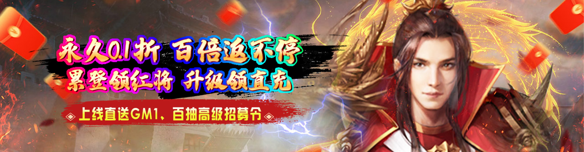 永久累充2000元:武将升星丹*500,武将觉醒丹*500,红将福利碎片礼包*500,随机属性丹*100
